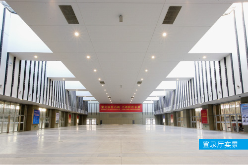 登录厅尺寸:28m ×70m;登录厅面积:2000㎡;高度:10m;登录厅与两侧展厅相通