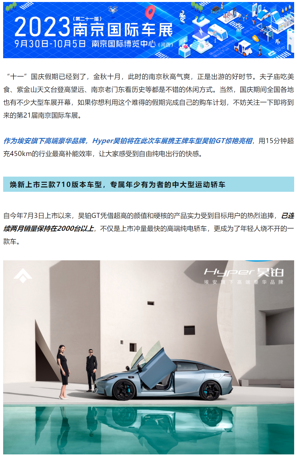 一杯咖啡时间超充450km,昊铂GT登陆2023(第二十一届)南京国际车展