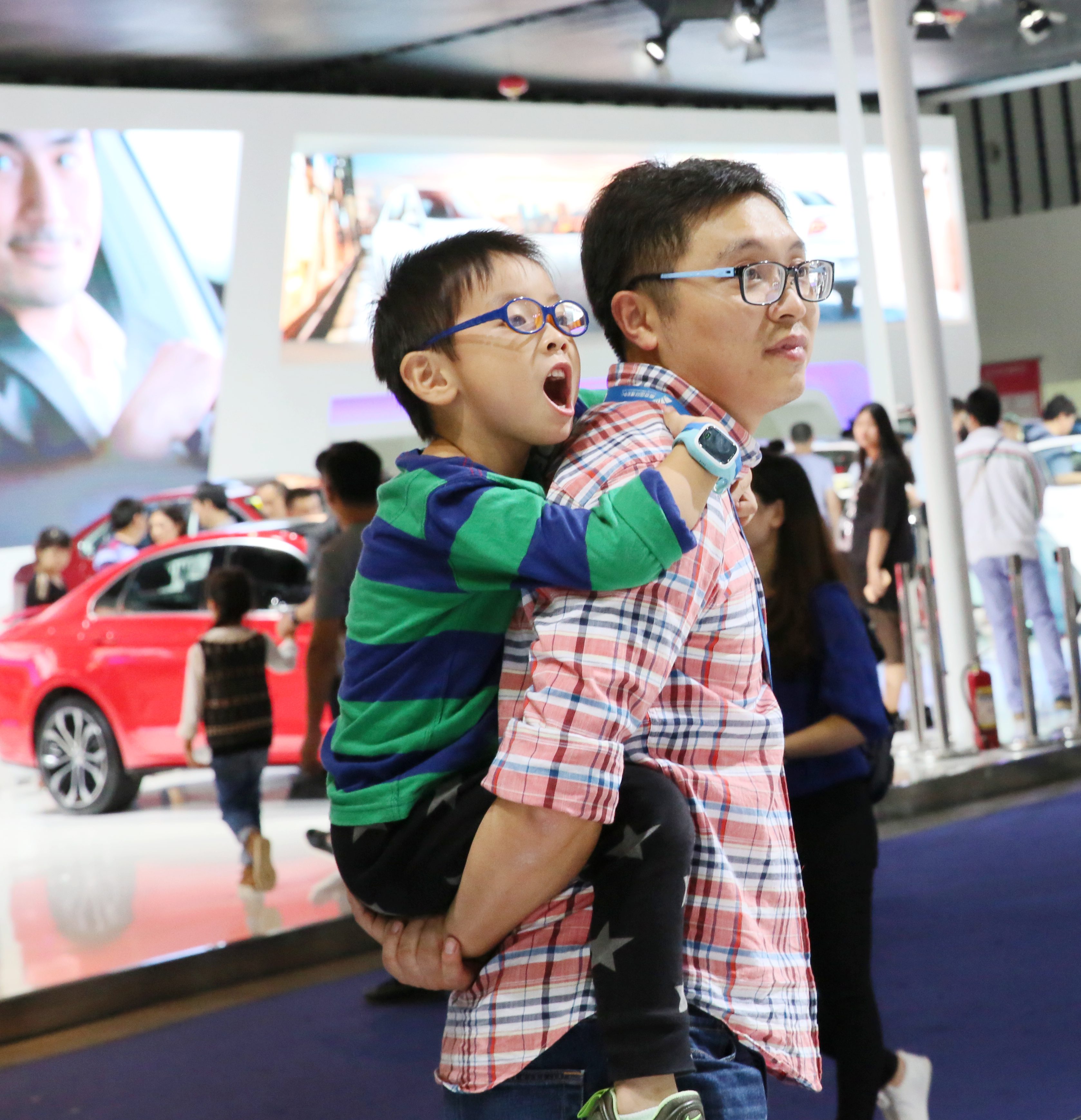 妈妈说车展快开始了,一起去看车吧,爸爸